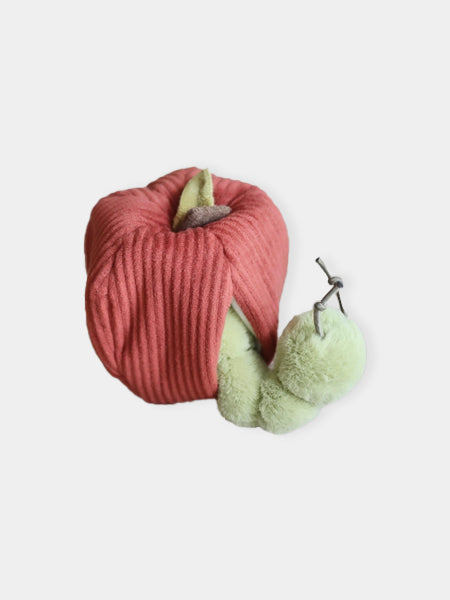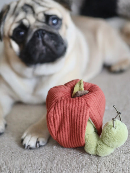 Le jouet d'occupation pour chien Pomme 🍎 de Lambwolf Collective combine à la fois une peluche toute douce et un jouet de fouille grâce à la petite peluche cachée dans la pomme. Votre Poilu se fera une joie d'essayer de sortir le vers caché dans la pomme ce qui l'incitera à se dépenser davantage. Pour une petite dose de motivation supplémentaire, nous vous recommandons de cacher quelques friandises à l'intérieur !