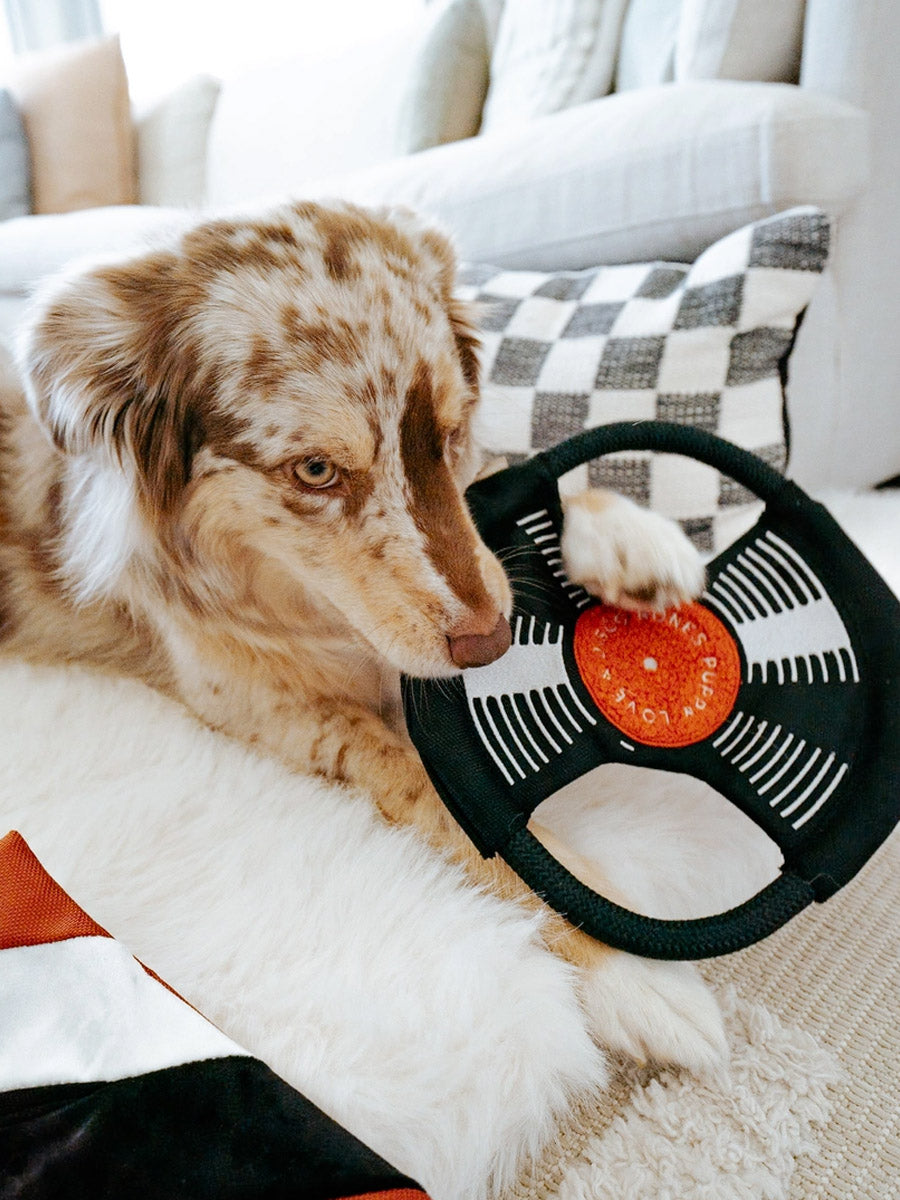 Le jouet d'occupation pour chien Bark To Beat 💿🎵 de Lambwolf Collective est la combinaison parfaite d'une peluche toute douce et d'un jouet de fouille. Votre Poilu se fera une joie d'essayer de faire sortir les friandises que vous arez préalablement cachées dans le sac.