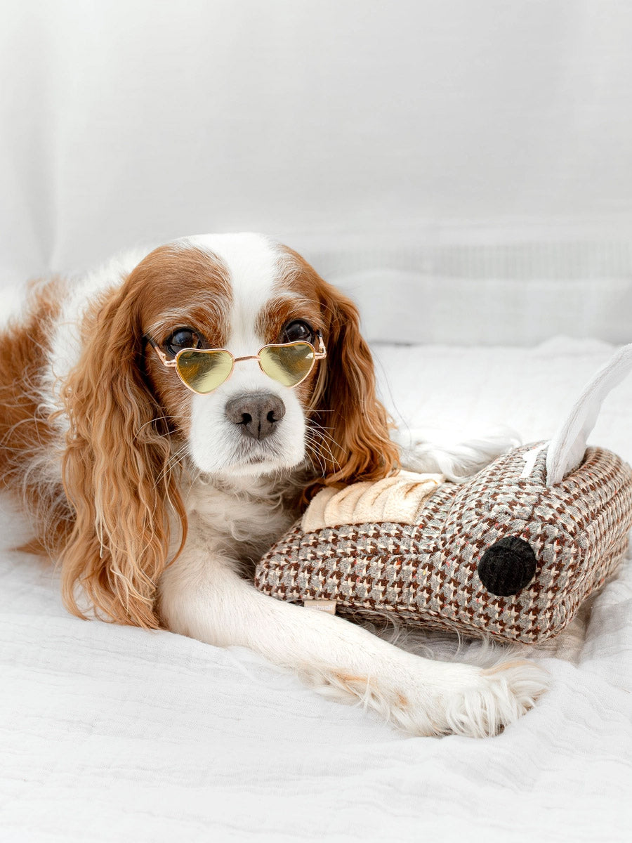 Le jouet d'occupation pour chien Machine à écrire 📜 de Lambwolf Collective est la combinaison parfaite d'une peluche toute douce et d'un jouet de fouille. Votre Poilu se fera une joie d'essayer de faire sortir les friandises que vous arez préalablement cachées dans le sac.