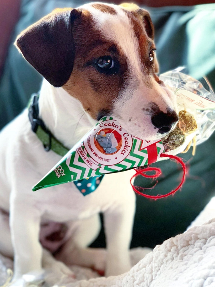 Les délicieuses bouchées de Noël pour chien de Cooka's Cookies sont des friandises saines et naturelles. Elle sont fabriquées artisanalement au Portugal avec des aliments propres à la consommation humaine. Les friandises Cooka's Cookies sont cuites au four lentement pour préserver toutes les saveurs et les nutriments. Les biscuits ne contiennent ni colorants, ni additifs, ni arômes artificiels et ni conservateurs.