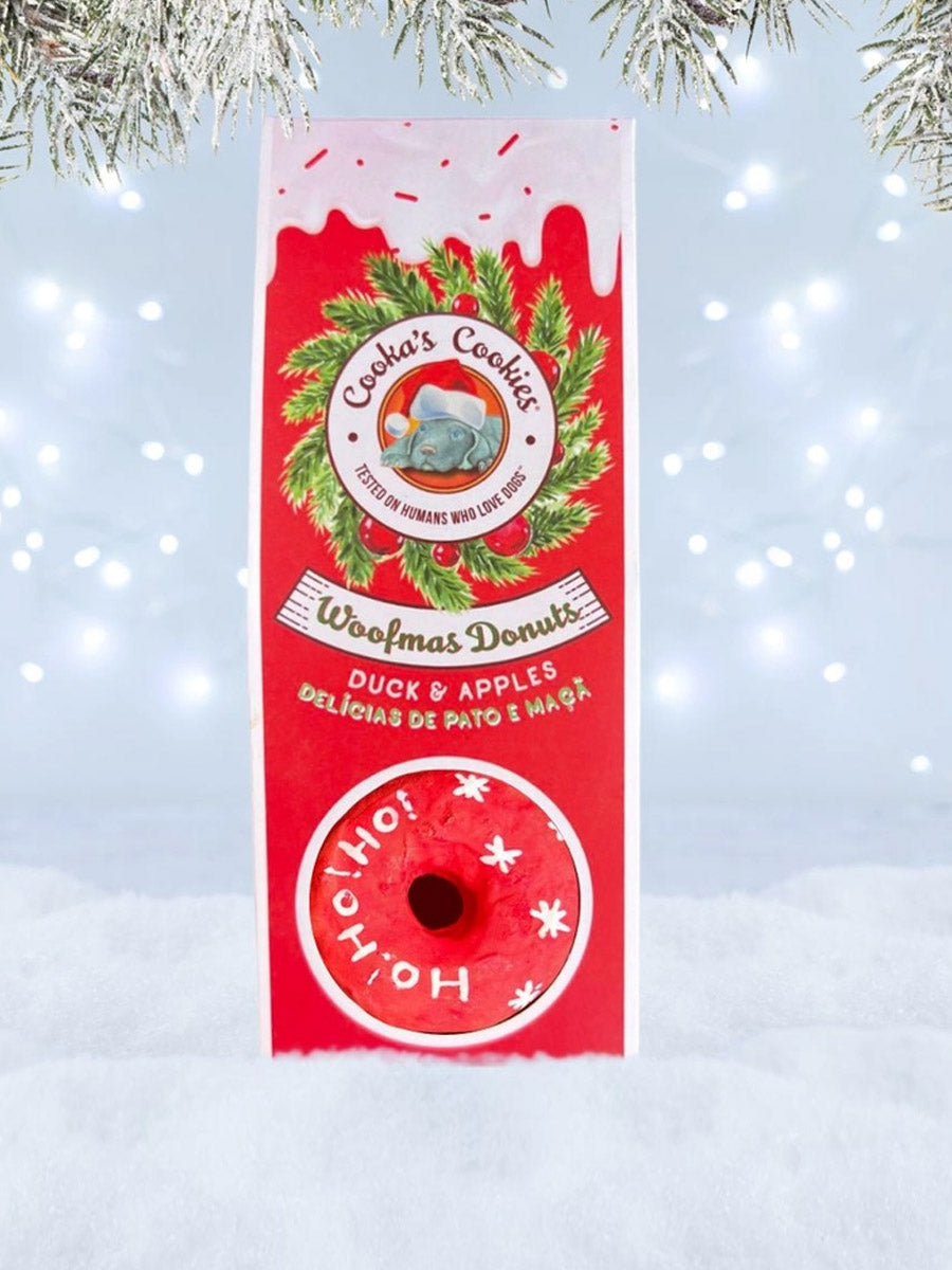 Les délicieux donuts de Noël au canard et à la dinde de Cooka's Cookies sont des friandises saines et naturelles. Elle sont fabriquées artisanalement au Portugal avec des aliments propres à la consommation humaine. Les donuts sont fabriqués avec 50% de viande fraîche de Canard et de Dinde pour une meilleure digestion. Ils sont cuits au four lentement pour préserver toutes les saveurs et les nutriments. Les biscuits ne contiennent ni colorants, ni additifs, ni arômes artificiels et ni conservateurs.