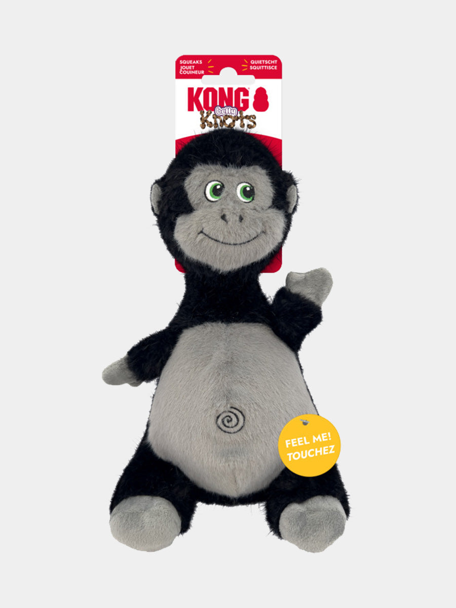 Découvrez les peluches pour chien de Kong, des peluches trop mignonnes qui rendront dingue votre Poilu ! Ce Gorille en peluche douce renferme une balle en corde à l'intérieur de son ventre. Sa forme ronde et légèrement plus lourde incite les chiens à le secouer, le lancer et le mâcher. La tête du gorille renferme un couineur qui éveille la curiosité des chiens et prolonge le plaisir du jeu.