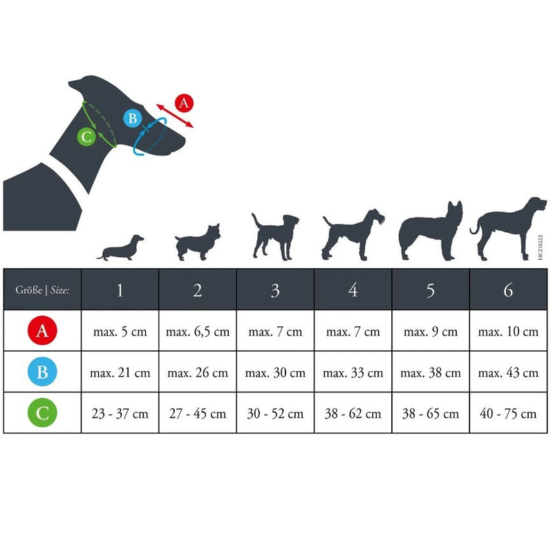 Votre chien ne doit pas être trop serré mais la muselière doit aussi bien rester en place. La sangle d’attache autour du cou doit être réglable.