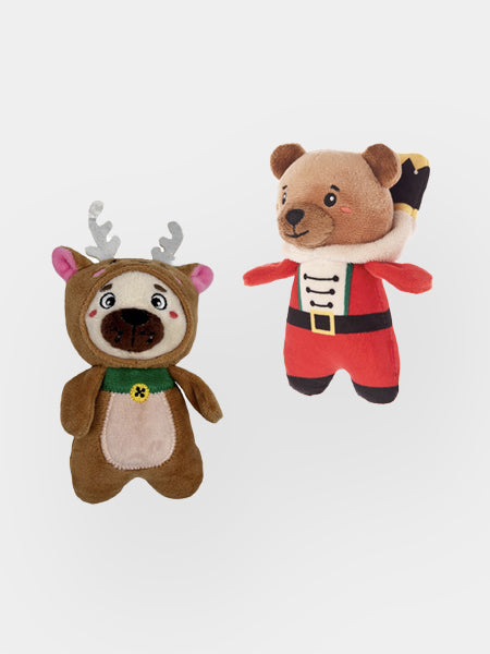 Le Duo de peluche Noël 🎅🎁 pour chien et chiot de Ferribiella est toute douce. Ton Poilu tombera sous le charme de ce doudou qui l'accompagnera pendant ses parties de jeu mais aussi pendant sa sieste. Sa conception est pensée pour répondre aux besoins des chiens :